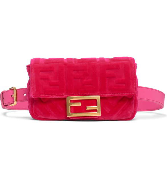 Shop Fendi Logo Velvet Belt Bag In Fuxia Oro Vibrato - The image is png format and has been processed into transparent background by ps tool.